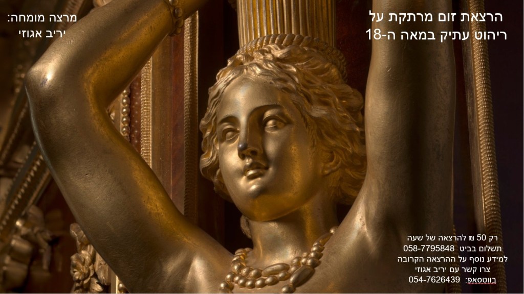 הרצאת זום מרתקת על ריהוט עתיק מהמאה ה-18 (מרצה מומחה: יריב אגוזי) למידע נוסף על ההרצאה הקרובה: 054-7626439 (ווטסאפ)