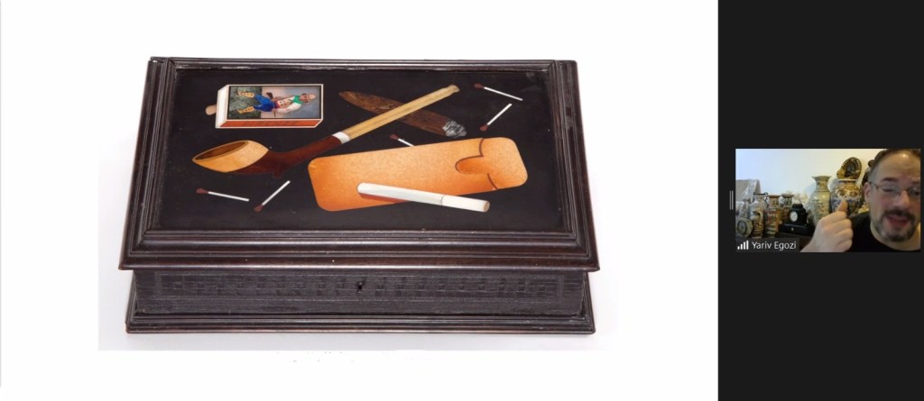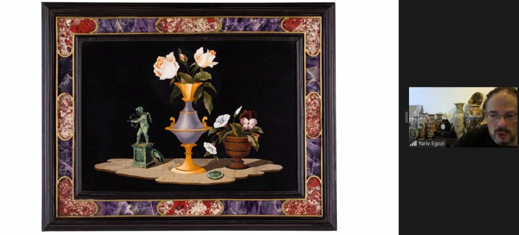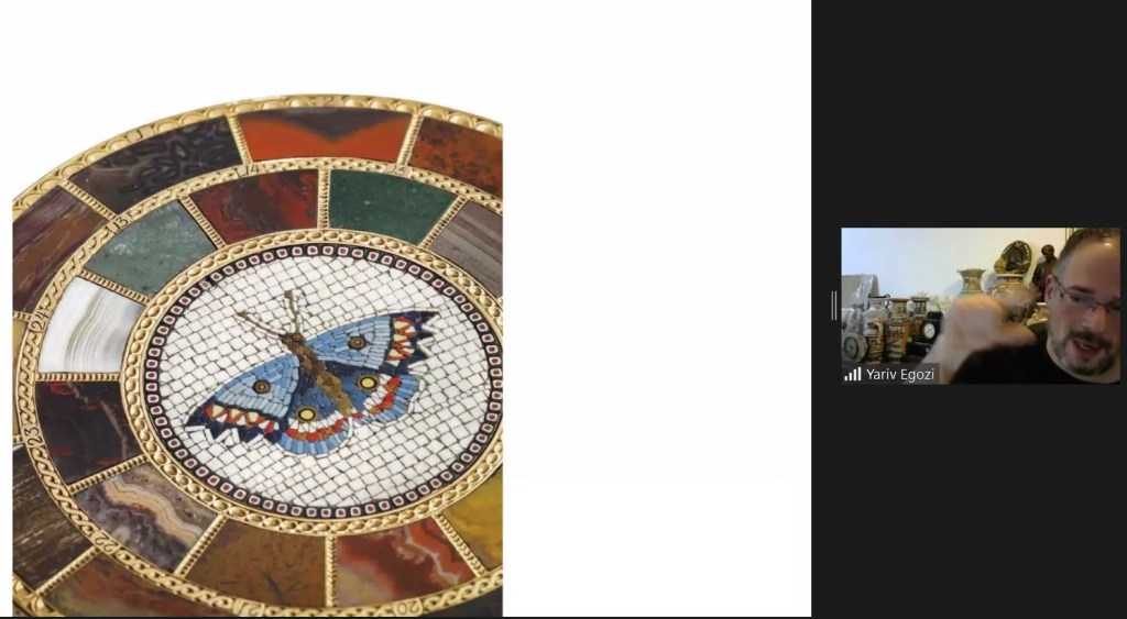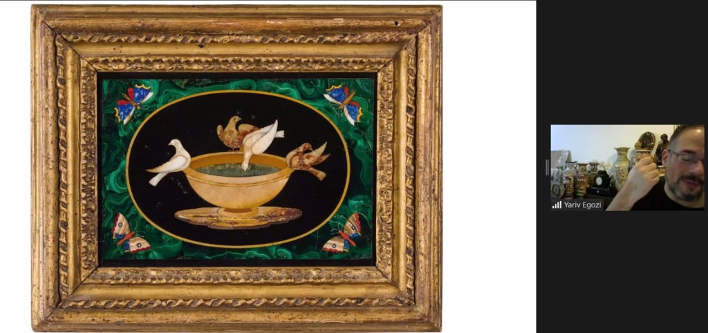 הצצה להרצאת זום ששודרה בתאריך 12.1.20 על חפצי אמנות עתיקים מפיאטרה דורה, מיקרומוזאיקה, אמייל ושנהב בהנחיית מומחה האמנות יריב אגוזי, למידע על הרצאות זום נוספות לחובבי תרבות, עיצוב, אמנות ואספנות, מתוך הקורס המרתק הזה צרו קשר בווטסאפ 054-7626439