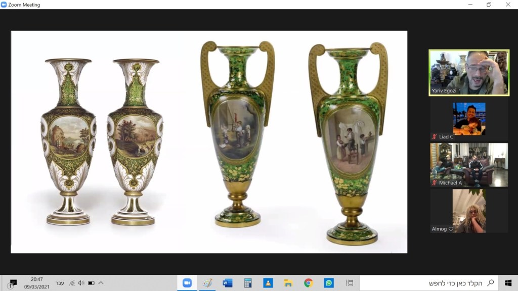 שוב סיימתי ללמד בזום 3 שעות מרתקות על חפצים עתיקים מזכוכית מהמאות ה-18 וה-19, זו אחת ההרצאות היפות בקורס ללימודי הערכת אמנות ועתיקות בהנחייתי, הרצאה עוצרת נשימה ויזואלית, תודה לכל עשרות הנרשמים שצפו בהרצאה הזו אמש. ניפגש בהרצאה בשבוע הבא בהרצאה חדשה על נושא אחר לחלוטין ומעניין לא פחות. בקרוב יפתח קורס חדש בזום על חפצי אמנות עתיקים. למידע (ווטסאפ יריב אגוזי: 054-7626439)