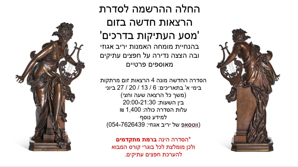 אספנות של חפצים עתיקים – תרבות, אמנות, עיצוב פנים והיסטוריה | סדרה בזום – ZOOM • בהנחיית מומחה האמנות הוותיק יריב אגוזי 054-7626439