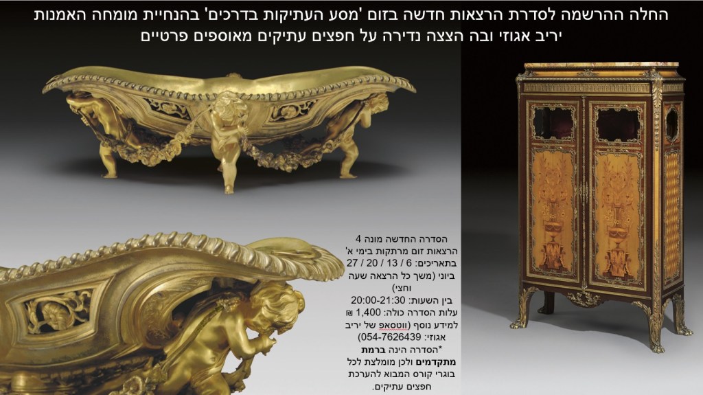 תרבות בזום – הרצאות עד הבית – הרצאות זום מרתקות על עיצוב פנים, חפצי אמנות עתיקים, אוספים ואספנות בהנחיית מומחה האמנות הוותיק יריב אגוזי 054-7626439 (ווטסאפ).