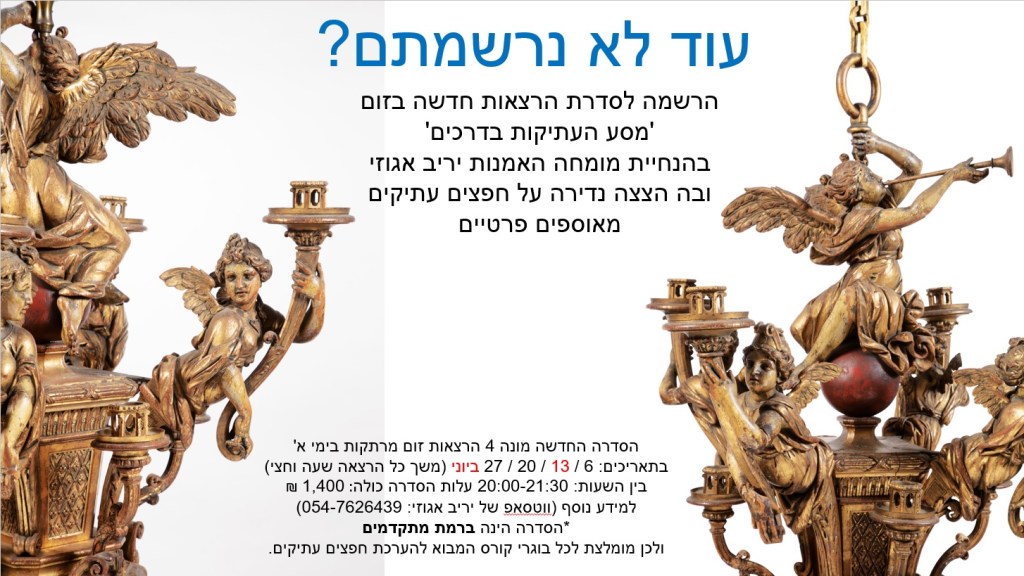 הרצאות זום בקורס מתקדמים (התמחות) להערכת חפצים עתיקים – בהנחיית מומחה הוותיק יריב אגוזי לפרטים 054-7626439