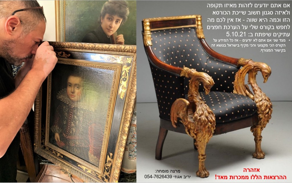 למידע על הקורס הבא לחצו על הקישור המצורף: https://antiquecourse.com/?fbclid=IwAR0-D8YZWM5T0VAkGVcwYR61c8dZWh15Sd8mj2PZuqFUeG19S_hw3WpCLFw