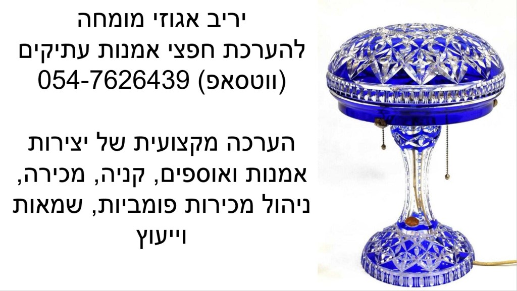 יריב אגוזי מומחה להערכת חפצי אמנות עתיקים (ווטסאפ) 054-7626439 הערכה מקצועית של יצירות אמנות ואוספים, קניה, מכירה, ניהול מכירות פומביות, שמאות וייעוץ