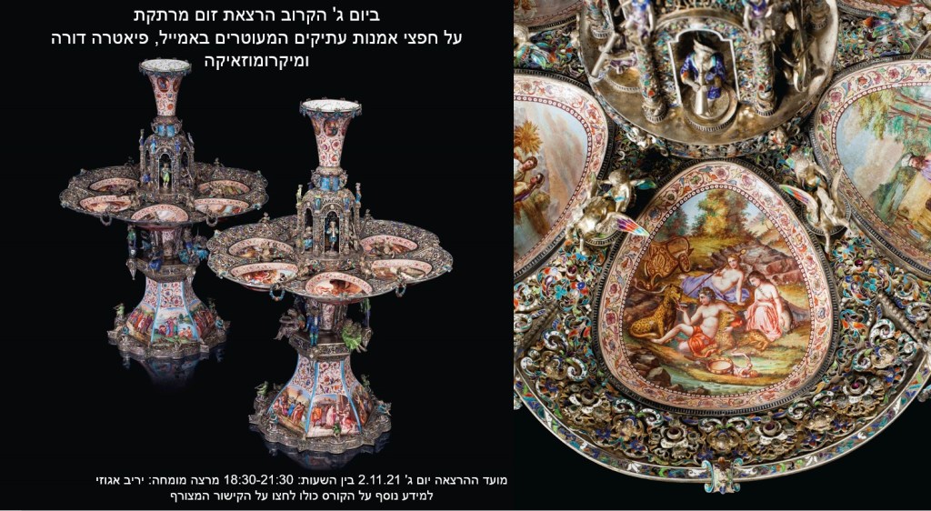 ביום ג' הקרוב הרצאת זום מרתקת על חפצי אמנות עתיקים המעוטרים באמייל, פיאטרה דורה ומיקרומוזאיקה