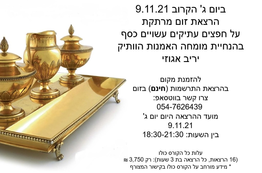 הרצאות מקוונות בזום על אמנות ואספנות, חפצים עתיקים ועיצוב – קורס חדש ומקיף בהנחיית מומחה האמנות הוותיק יריב אגוזי