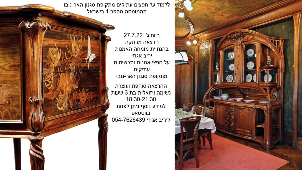 ללמוד על סגנון האר נובו בהרצאה מרתקת המציגה רהיטים וחפצים עתיקים מתקופת סגנון חשוב זה