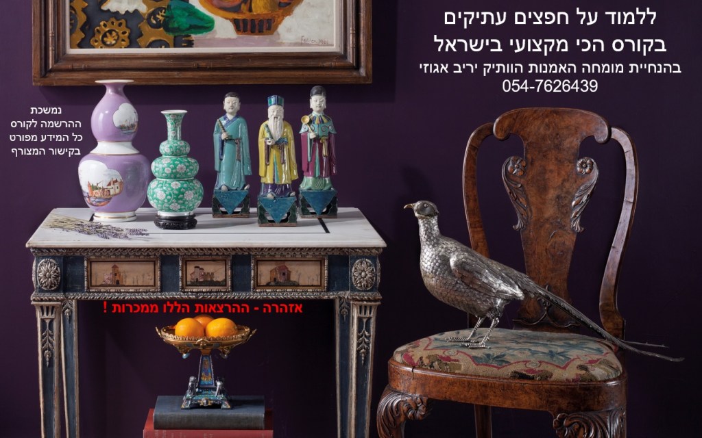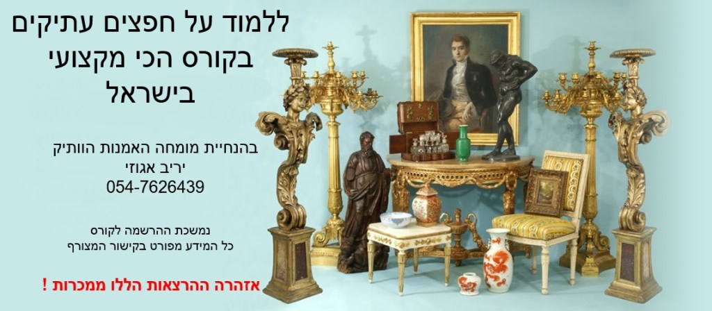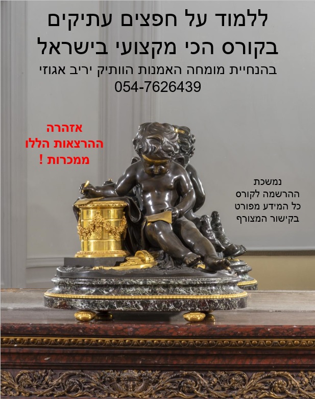 במהלך החודשים יולי ואוגוסט יפתחו עוד שני קורסים ללימודי הערכת יצירות אמנות וחפצים עתיקים בהנחיית מומחה האמנות הוותיק יריב אגוזי (גם קורס בכתת לימוד וגם קורס זהה בזום) 054-7626439 למידע נוסף לחצו על הקישור הבא: https://antiquecourse.com/?utm_source=%D7%A4%D7%99%D7%99%D7%A1%D7%91%D7%95%D7%A7&utm_medium=%D7%98%D7%A8%D7%90%D7%A4%D7%99%D7%A7&fbclid=IwAR2iV4_RKx3QG_L_HshcUu6uMUDfpVHyUmFgN_fxWyyBBWbtVK1rmHlcynw