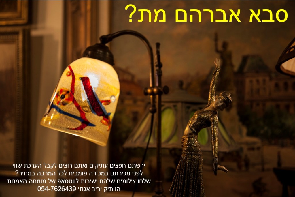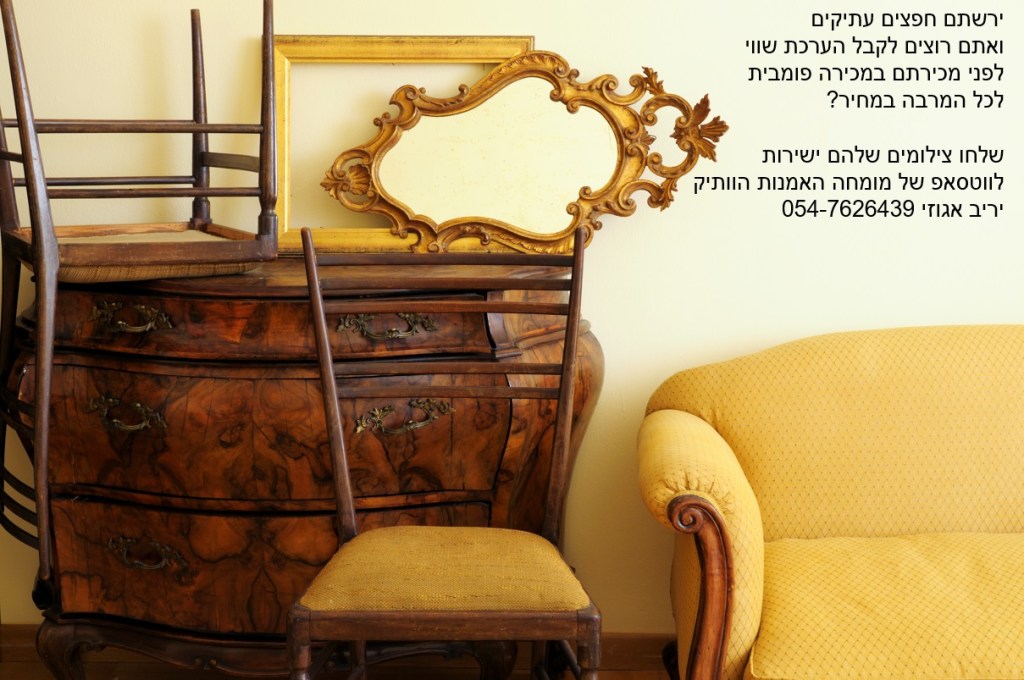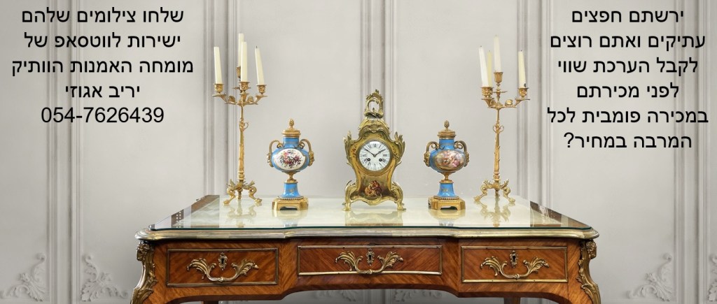 ירשתם חפצים עתיקים ואתם רוצים לקבל הערכת שווי לפני מכירתם במכירה פומבית לכל המרבה במחיר? שלחו צילומים שלהם ישירות לווטסאפ של מומחה האמנות הוותיק יריב אגוזי 054-7626439