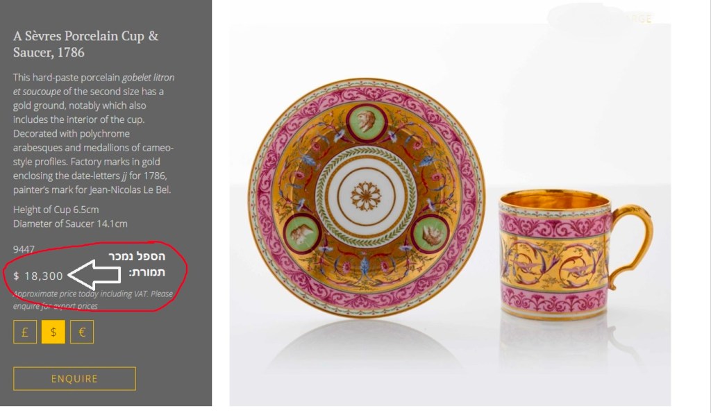 בצילום ספל פורצלן עתיק בודד שנמכר תמורת: 18,300 דולר !
