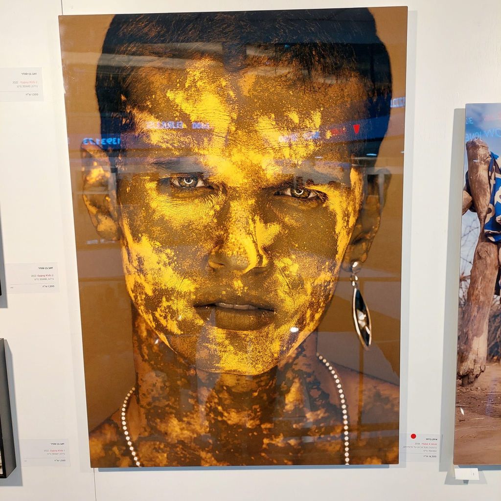 1. איתן ברנט בהדפסת מטל פרינט על אלומניום שנקראת: Make a wish בה פורטרט גבר מוזהב עם עגיל באוזן.
