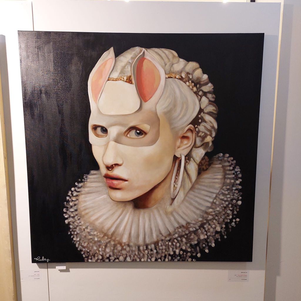 10. ציור גדול שגם הוא נתלה בפינה כמעט נסתרת של האמנית רובי בת ארנון שנקראת Even god is single, חבל שדווקא עבודה מעולה כזו נתלתה כמעט בסתר בזמן שיצירות מביכות בביינוניות שלהן נתלו במרכז התערוכה (בחירה אוצרותית תמוהה למדי בעיני), מה גם שזו עבודה גדולה שדורשת צפיה ממרחק ונתלתה במסדרון צר וחשוך. מוזר ומיותר.