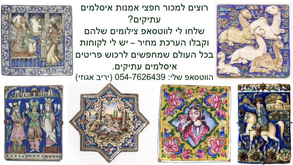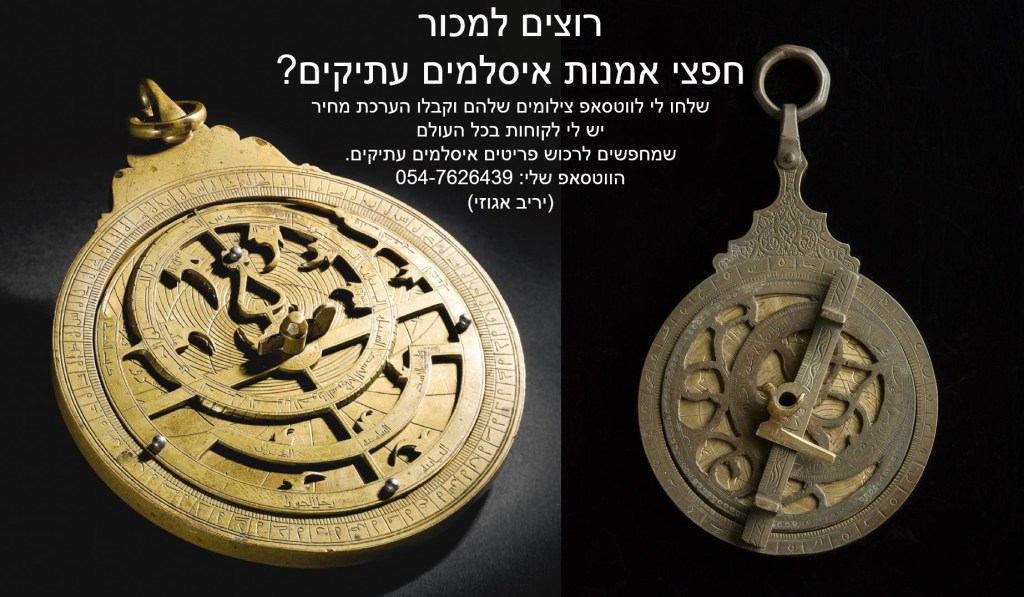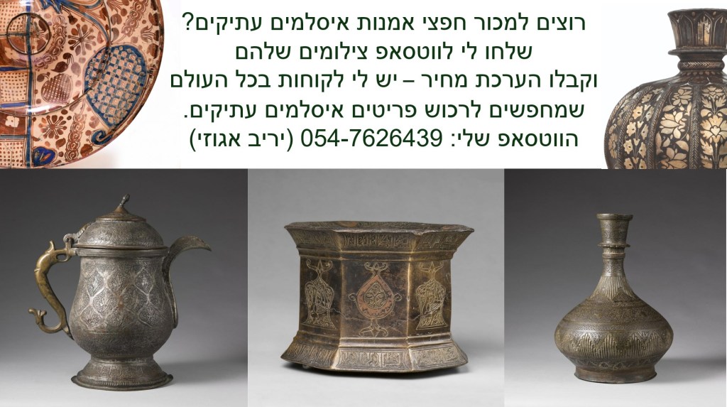 ייתכן שזו תמונה של טקסט שאומר 'רוצים למכור חפצי אמנות איסלמים עתיקים? שלחו לי לווטסאפ צילומים שלהם וקבלו הערכת מחיר -יש לי לקוחות בכל העולם שמחפשים לרכוש פריטים איסלמים עתיקים. הווטסאפ שלי: 054-7626439 (יריב אגוזי)