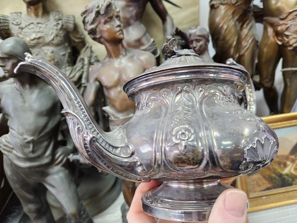נכנס למחסן של בית המכירות הפומביות בו אני עובד, על אחד המדפים ערמת קומקומים שהגברת שמסרה אותם העידה שרכשה אותם בבתי מכירות בארץ ככלים מצופים כסף (מוכספים) בכמה עשרות דולרים לקנקן.