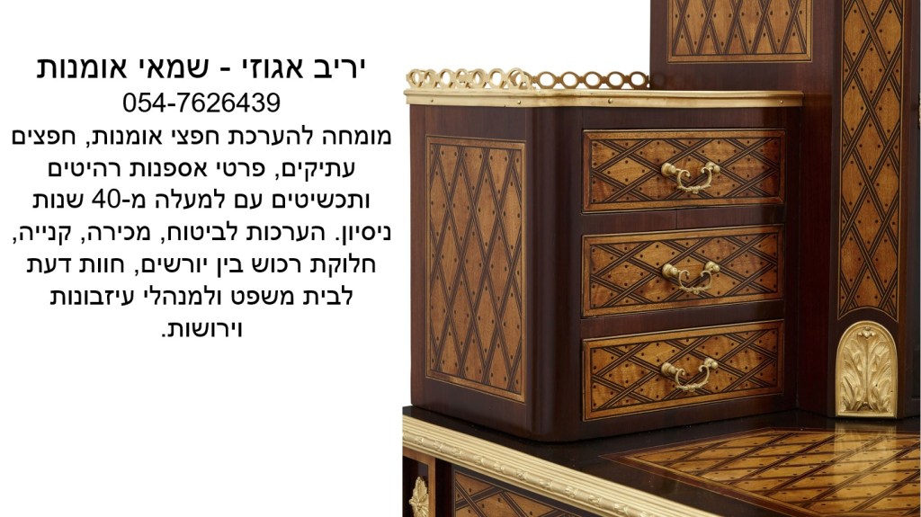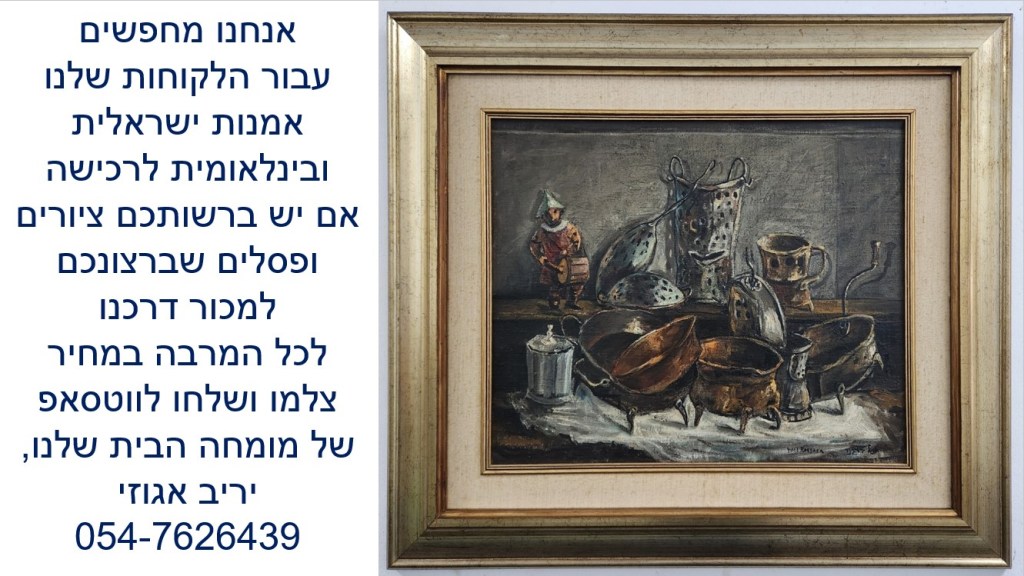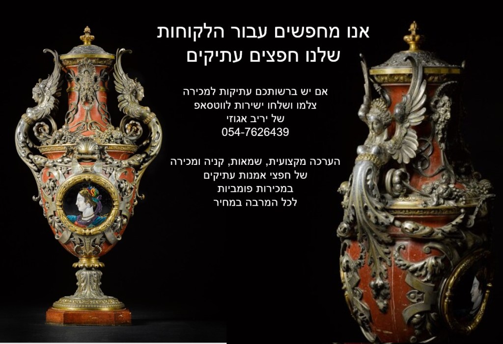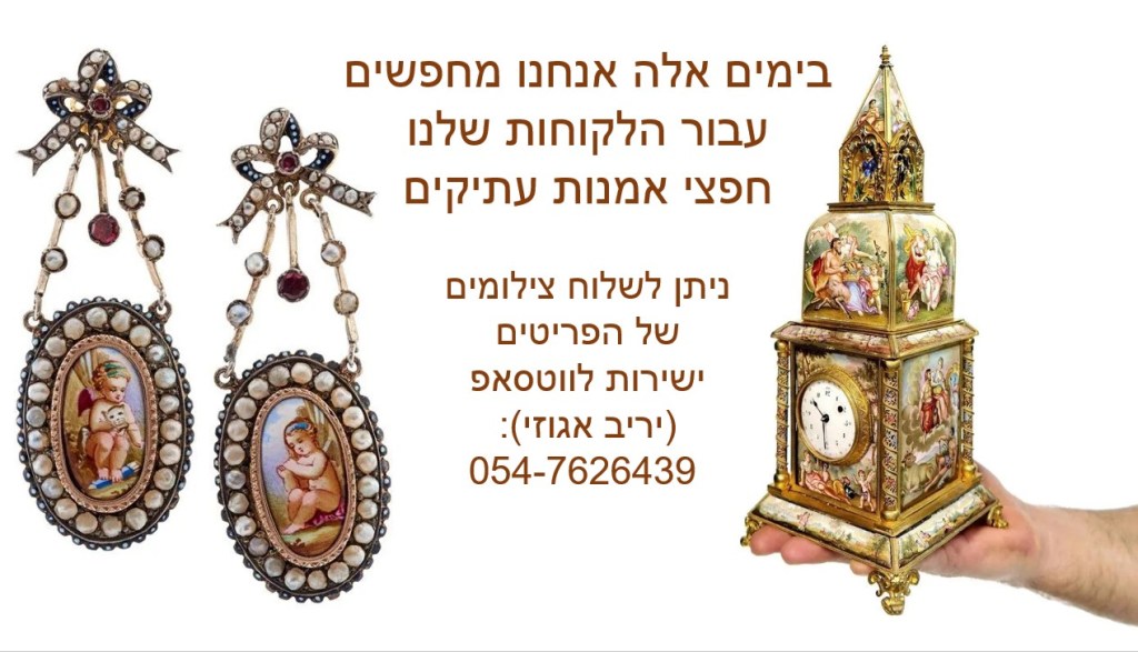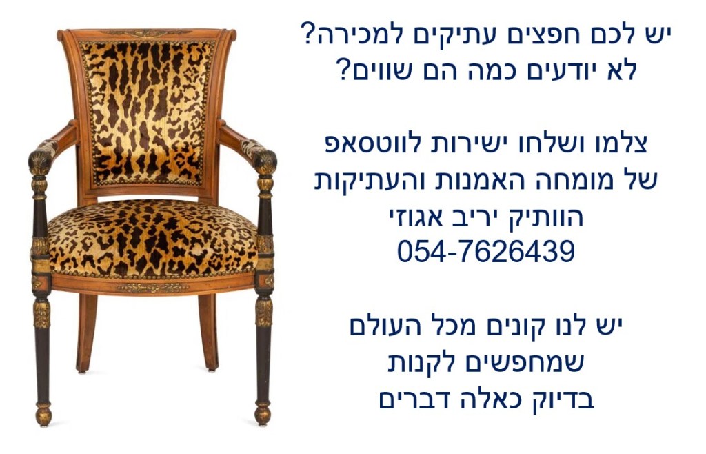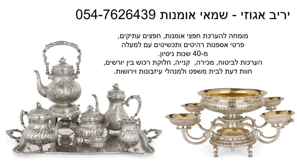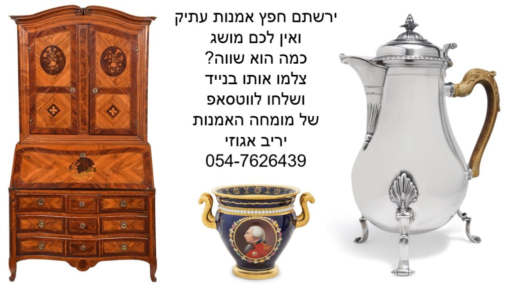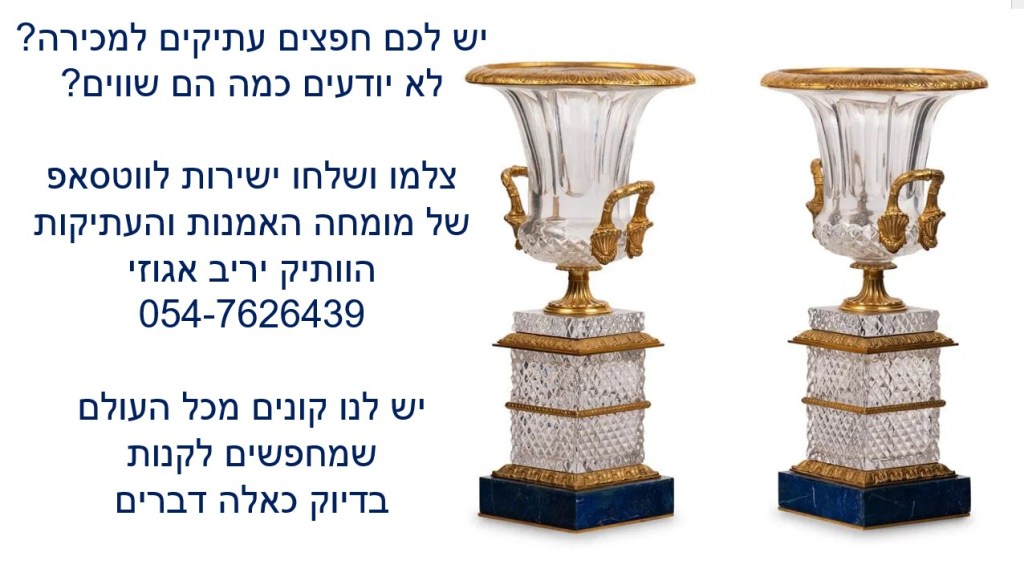 קונה תכולות עיזבונות ירושות – קונה תכולת בית – קונה תכולות קונה תכולת דירה מירושות ועיזבונות, אוספים פרטיים, חפצי ערך, עתיקות, ציורים, פסלים, יודאיקה, אמנות איסלמית עתיקה, כלי נחושת, כלי כסף, פורצלן וקריסטל, תכשיטי זהב וכסף ואמנות עתיקה מאסיה ומהמזרח הרחוק – מומלץ לשלוח צילומי הפריטים שיש ברשותכם ישירות לווטסאפ של יריב אגוזי 054-7626439