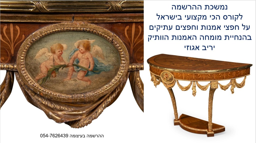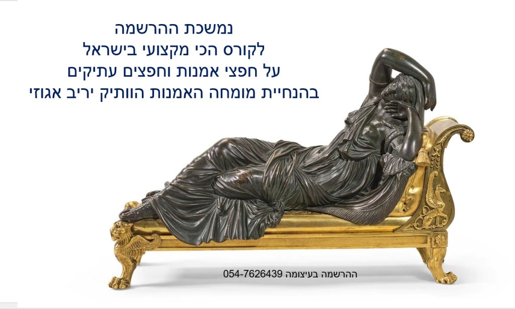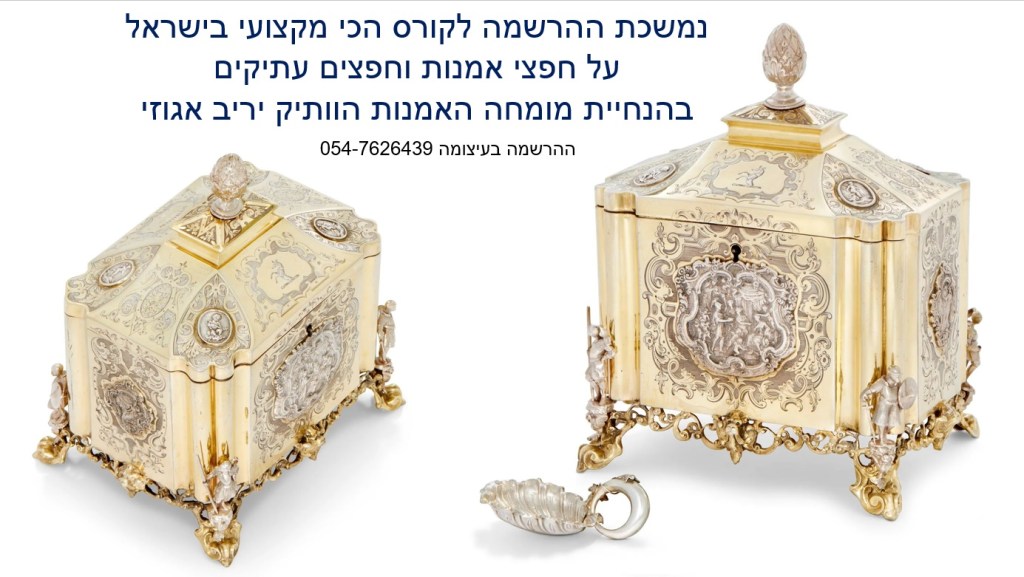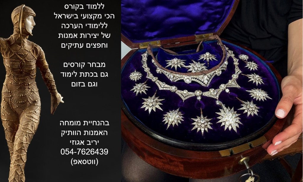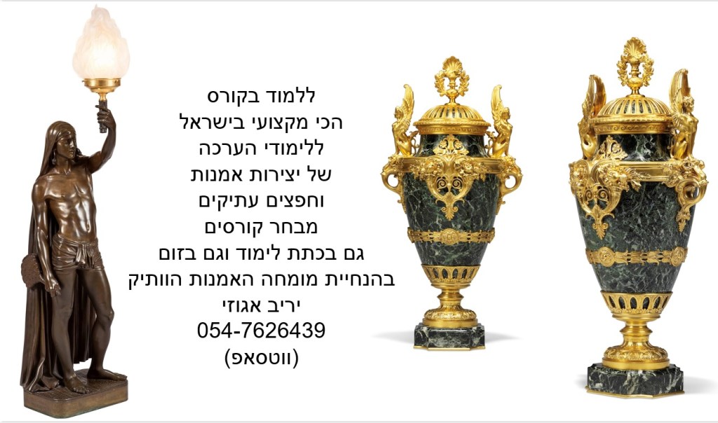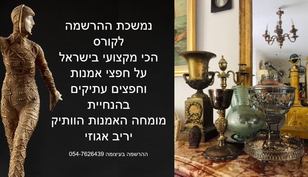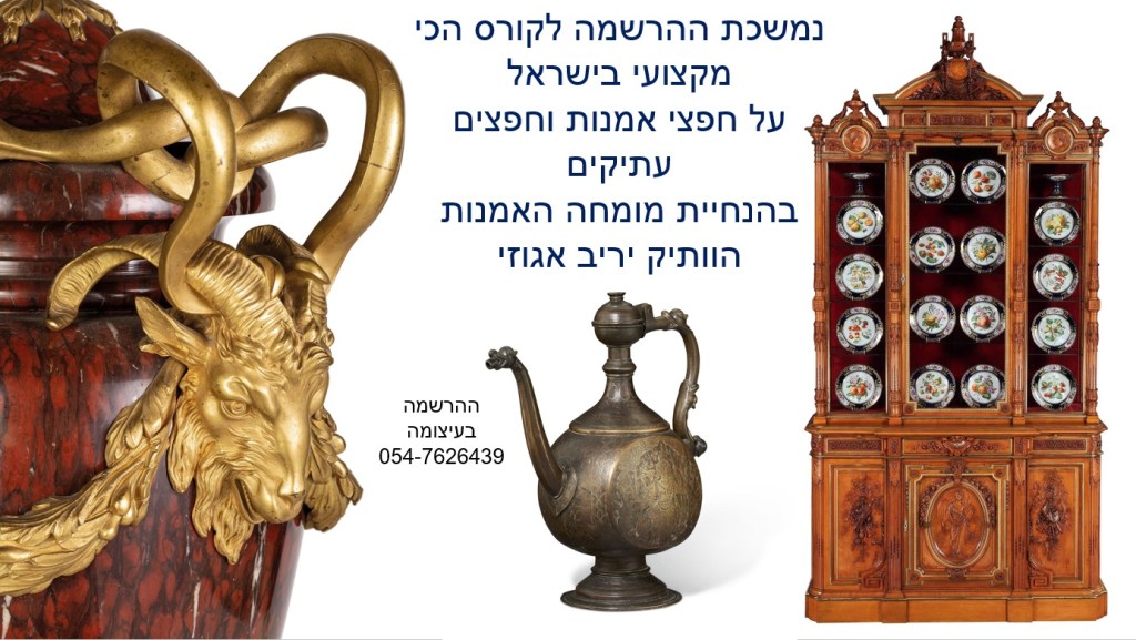 בואו ללמוד בקורס המוביל והמקצועי בישראל על הערכה ושמאות של אמנות, יצירות ואוספים, תכשיטים ועתיקות – בהנחיית שמאי האמנות הוותיק והמומחה לחפצים עתיקים יריב אגוזי 054-7626439 (ווטסאפ)