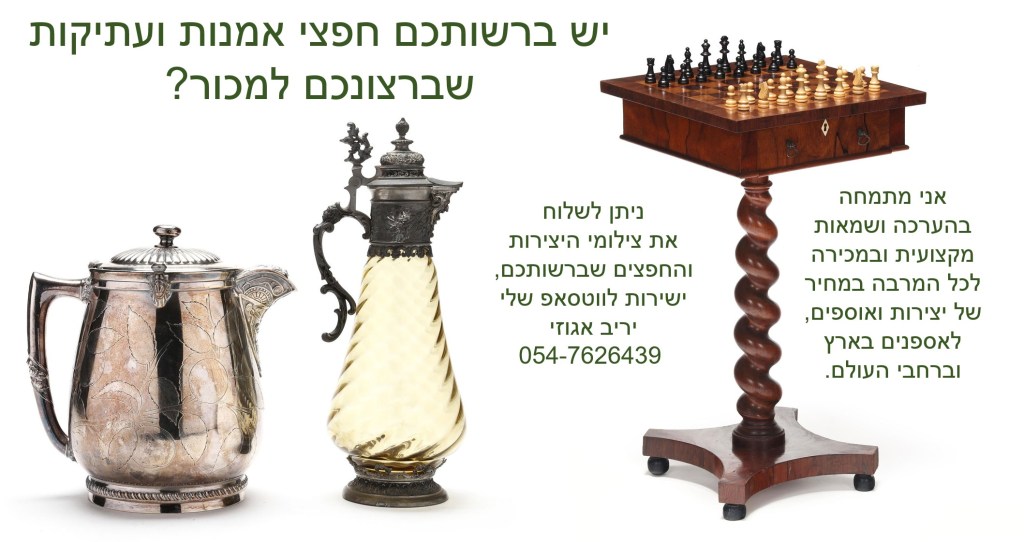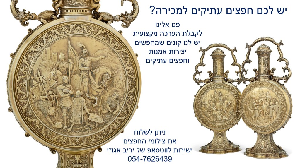 אולי יש לכם אוצר בבית? צריכים כסף? בדקו אם יש לכם חפצי ערך, יצירות אמנות ועתיקות ששוים הרבה כסף – צלמו ושלחו לווטסאפ של יריב אגוזי שמאי האמנות והמומחה להערכת חפצים ותכשיטים עתיקים 054-7626439