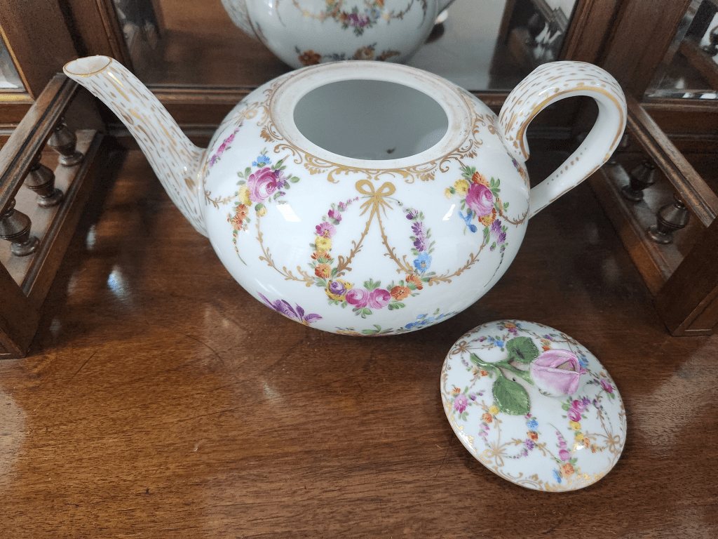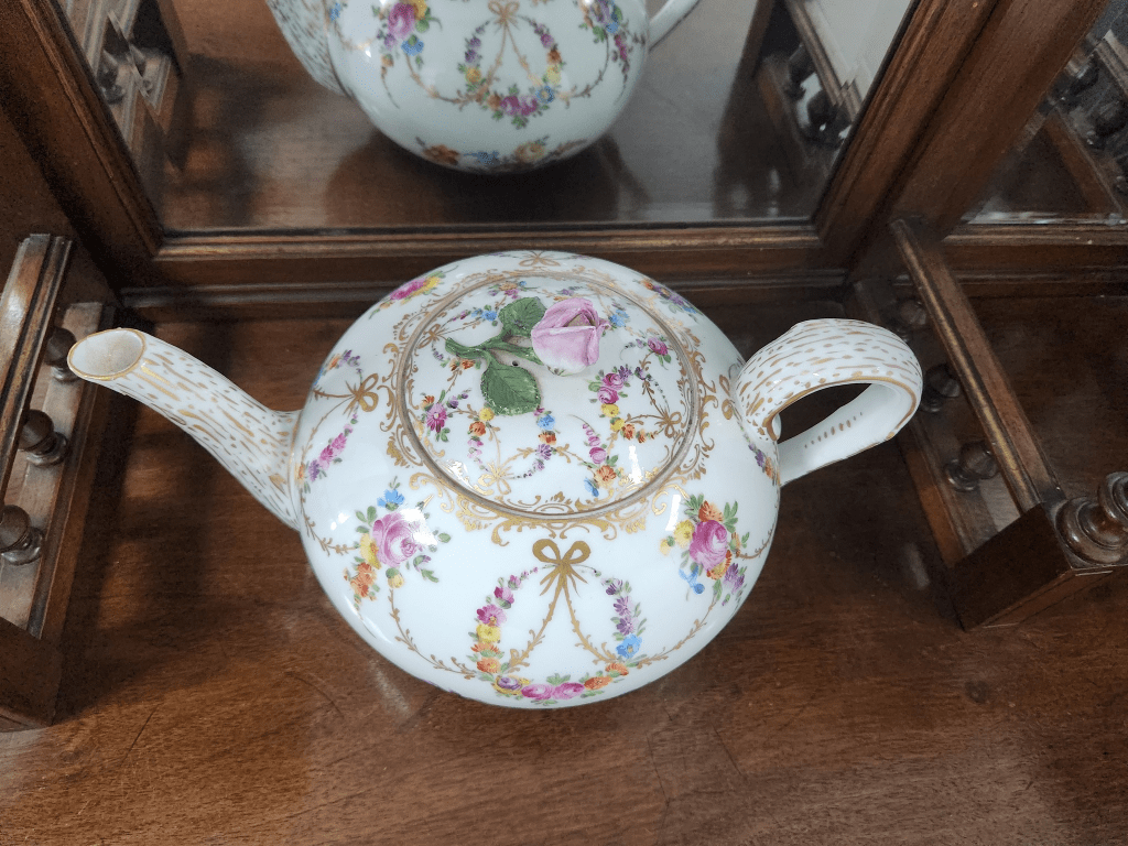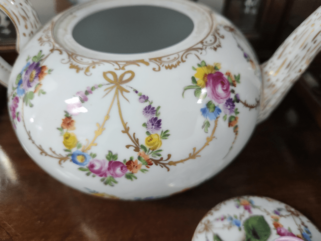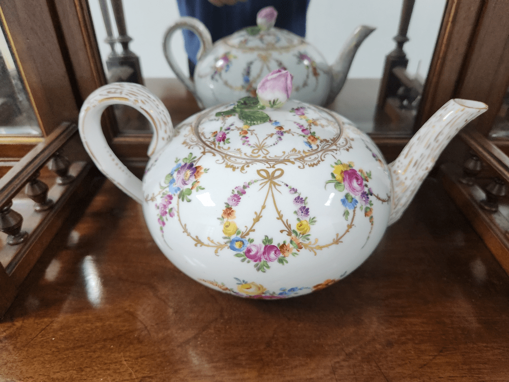 תראו מה נמסר לי לשמאות והערכה מקצועית לקראת המכירה הפומבית הבאה שלנו – קומקום תה גרמני עתיק מתוצרת: 'הלנה וולפסון' (Helena Wolfsohn), המאה ה-19, עשוי פורצלן מעוטר ציורי יד של פרחי גינה גרמנים באמייל ובזהב, חתום, תיקון ישן לקצה הזרבובית, 1880 בקירוב.