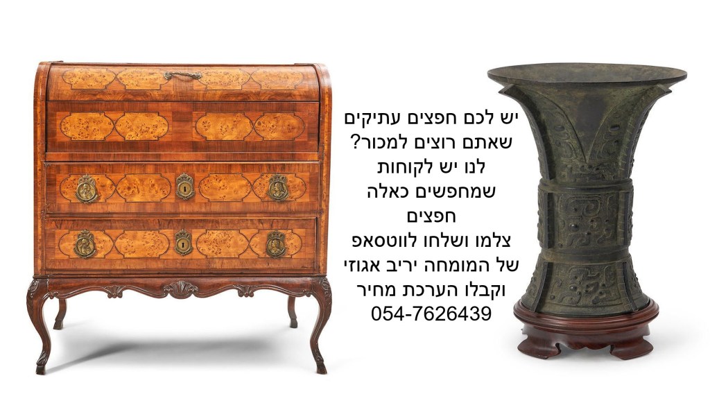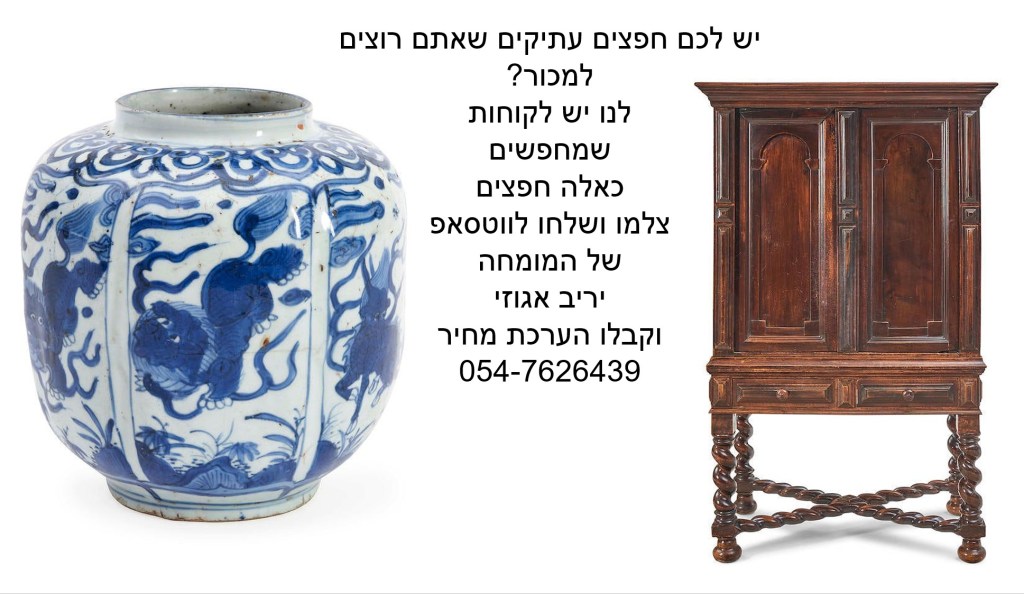 אולי יש לכם אוצרות בבית ששווים הרבה מאד כסף? צלמו ושלחו לווטסאפ של יריב אגוזי 054-7626439 קנייה ומכירה של חפצים עתיקים, אמנות ופרטי אספנות