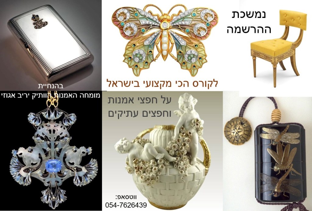 נמשכת ההרשמה לקורס הכי מקצועי בישראל על חפצים עתיקים והערכת יצירות אמנות ותכשיטים בהנחיית מומחה האמנות והשמאי הוותיק יריב אגוזי 054-7626439 (ווטסאפ)