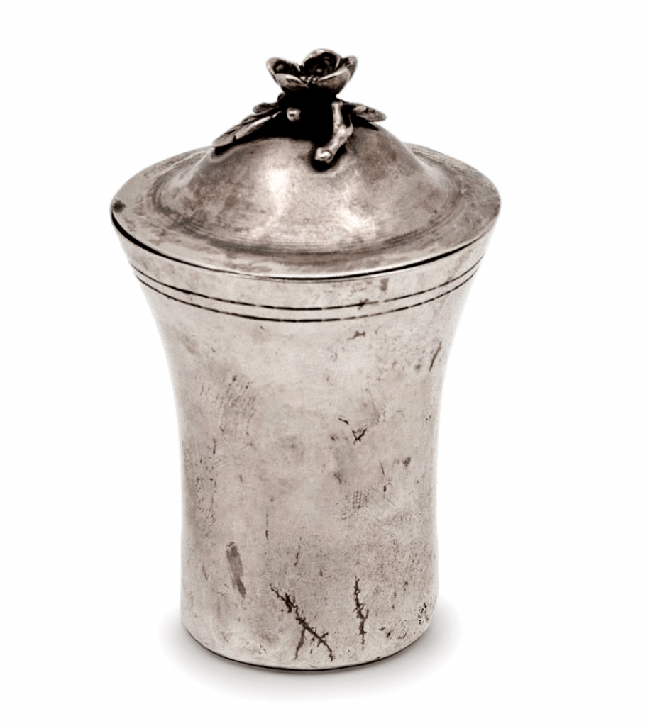 כוס קידוש עיראקית עתיקה מהמאה ה-19, עשויה כסף 900, חתומה, עם מכסה תואם