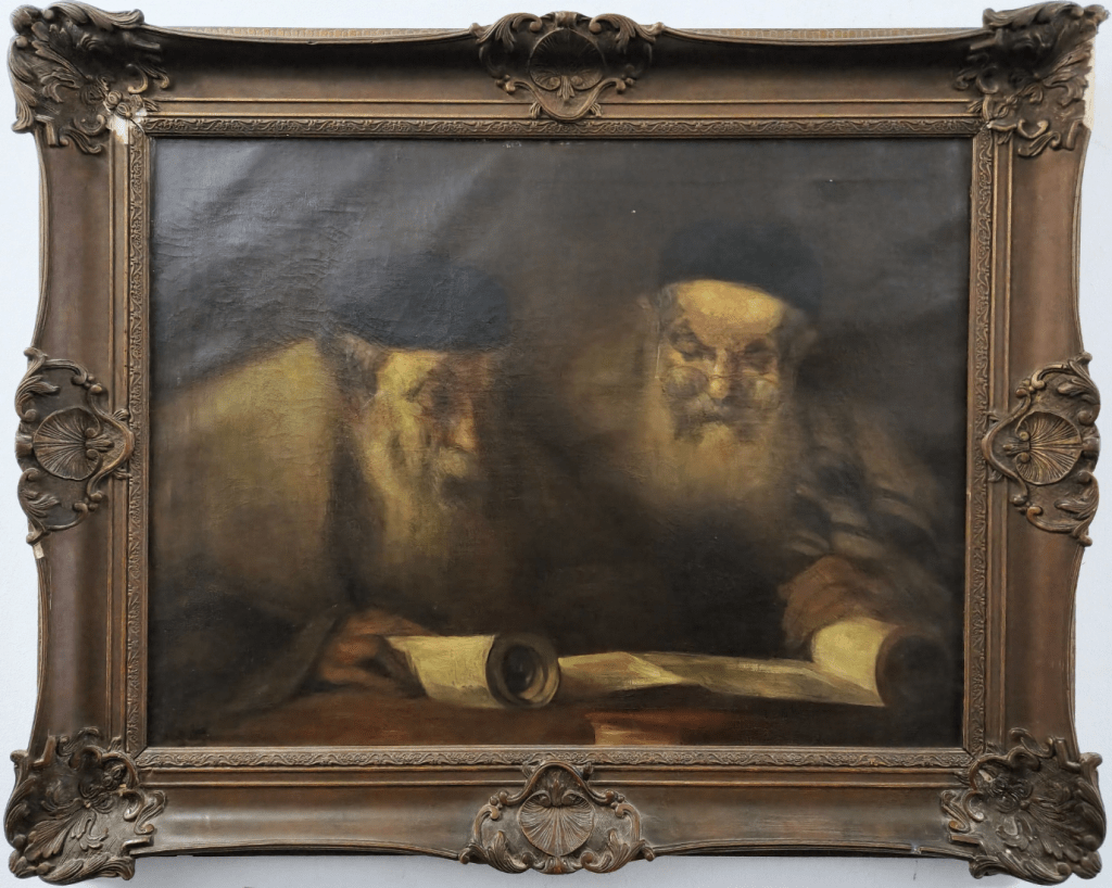 שני יהודים לומדים תורה ציור אירופאי עתיק מסוף המאה ה-19 או תחילת ה-20
