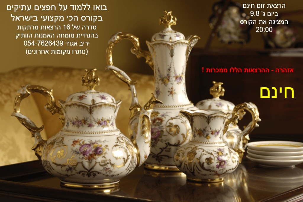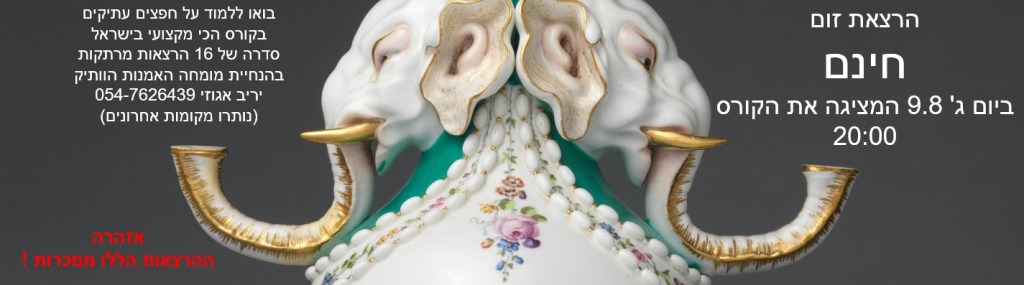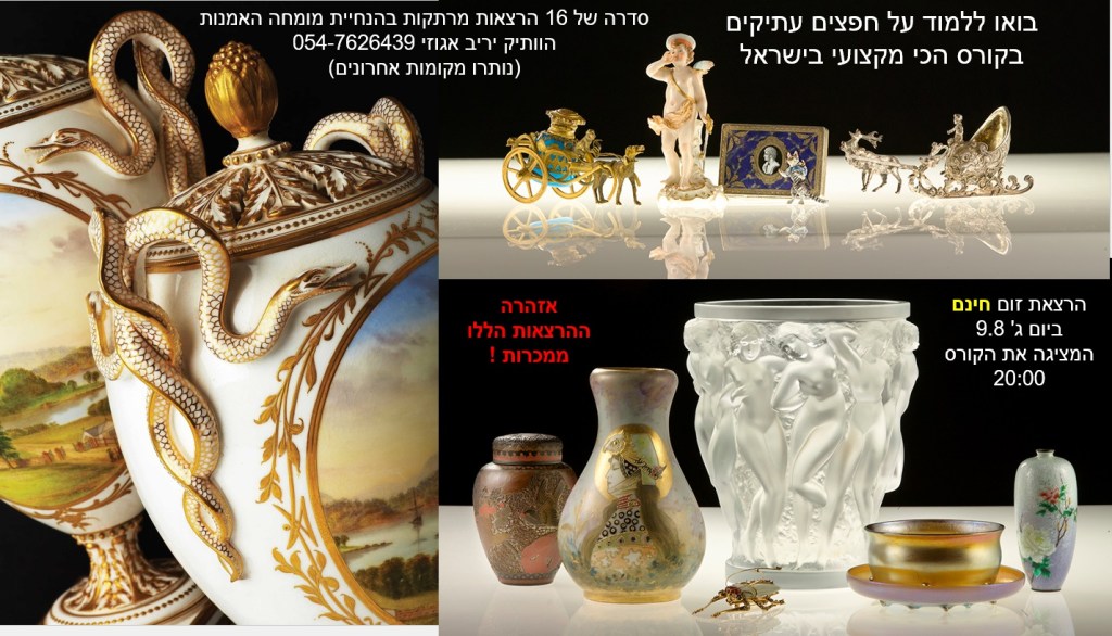 הרצאה חינם בזום המציגה את הקורס המוביל בישראל על חפצים עתיקים והערכת יצירות אמנות ואוספים – בהנחיית מומחה האמנות והשמאות הוותיק: יריב אגוזי 054-7626439