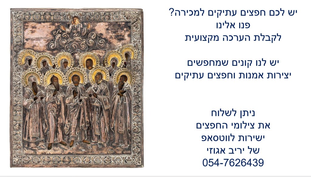 קורס על אמנות ישראלית, קורס על תכשיטים עתיקים וקורס על כלי כסף וחפצי יודאיקה עתיקים כולל זיהוי זיופים והעתקים